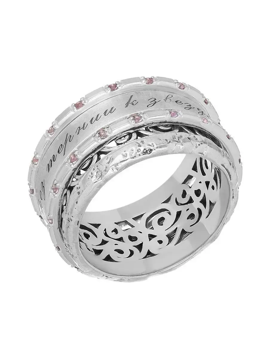 Серебряное кольцо - антистресс "Через тернии к звездам" с подвижным элементом. Средний вес: 9 грамм. Изделие выполнено из серебра 925 пробы и имеет подвижный элемент. На кольце выгравирована надпись "Через тернии к звездам". Женское кольцо бренда "Золотая Симфония" можно прибрести, как подарок любой женщине: подруге, девушке, любимой, жене, девочке, дочке, сестре, бабушке, коллеге, которую хочется порадовать просто так или на новый год, годовщину, день рождения, 8 марта, свадьбу, выпускной, на 14 февраля, день всех влюбленных, день матери. В ассортименте бренда большой выбор ювелирных украшений из серебра 925 пробы и золота 585 пробы. Вы можете найти кольца, помолвочные кольца, печатки, а также серьги пусеты (гвоздики), конго, трансформеры, протяжки.