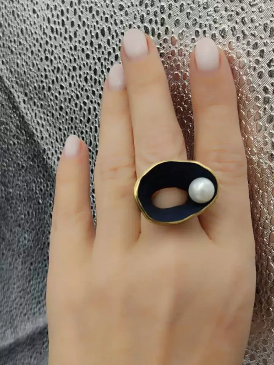 Ювелирное кольцо серебро 925 пробы - это модные и необычные изделия для женщин, которые придают изящество и шарм. Вставка: эмаль, жемчуг