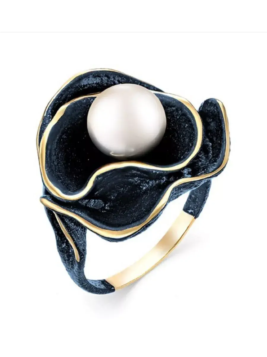 Ювелирное кольцо серебро 925 пробы - это модные и необычные изделия для женщин, которые придают изящество и шарм. Вставка: эмаль, жемчуг