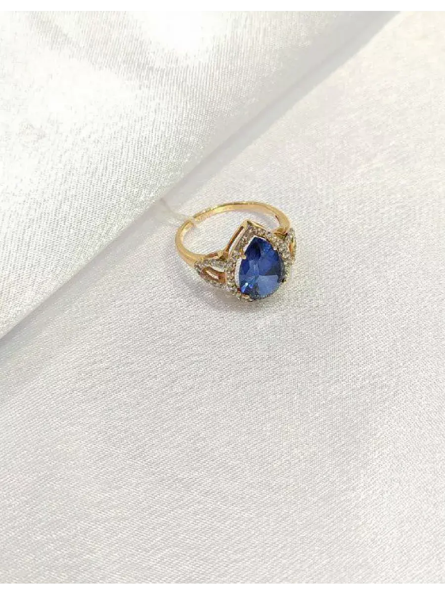 Золотое кольцо 585 пробы. Вставка: искусственный сапфир и фианит. Вес 2.86 грамм.