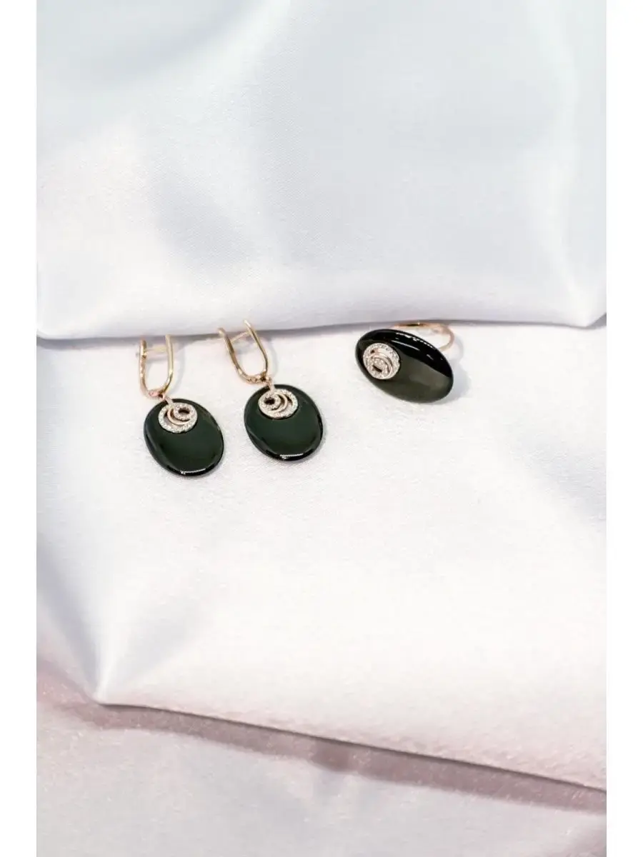 Комплект золото 585 пробы. Вставка: оникс и фианит.В комплект женских украшений входит:Серьги - 7.18 грамм,Кольцо - 3.65 грамм(17р.) Отличный подарок для всех дорогих сердцу дам. Преподнести его уместно на рождественское и новогоднее торжество, годовщину свадьбы или отношений и день рождения, также на юбилей или День Влюбленных, 8 марта и абсолютно любой другой без исключения праздник.Этот презент непременно порадует любимую девушку и сестру, дочку и маму, жену и лучшую подругу. Он обязательно вызовет восторг у бабушки и коллеги, тети и крестницы, племянницы и крестной. Ведь стильные и многофункциональные украшения обязательно займут почетное место в каждой женской коллекции. Они отличаются прочностью и долговечностью.