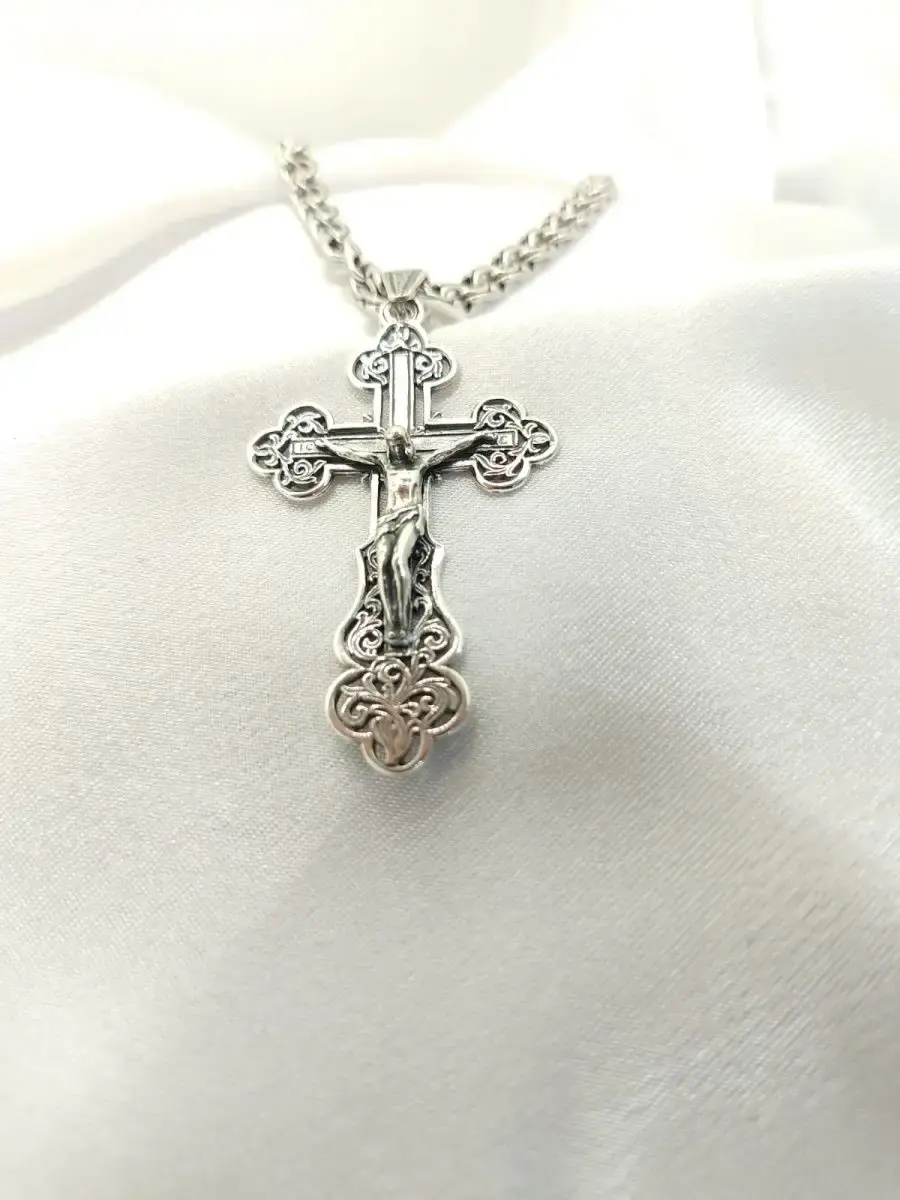 Подвеска Крест серебро. вес 6.1 гр. Размер без ушка: длина 5.3 см *3. Ушко 1 см. Нательный крест - Серебро 925 пробы с оксидированием поверхности. Значение веса в характеристиках является средним и может отличаться от фактического. Серебряная подвеска приходит с подарочной коробкой, как готовый вариант в качестве подарочного набора. Найти украшения нашего бренда можно также по запросу "Золотая Симфония" далее текстом: цепочка на шею, цепочка серебро 925, цепочка серебряная, цепочка мужская, серебро цепочка 925, крестик серебряный, крест, подарок на крестины, цепочка с крестиком, крест мужской, серебряный крестик мужской, рождественский подарок, православное украшение, подвеска крест, крест серебряный мужской, кулон подвеска, подарок мужчине, подарок парню, папе, подарок мужу, подвеска мужская, крестик серебро мужской.
