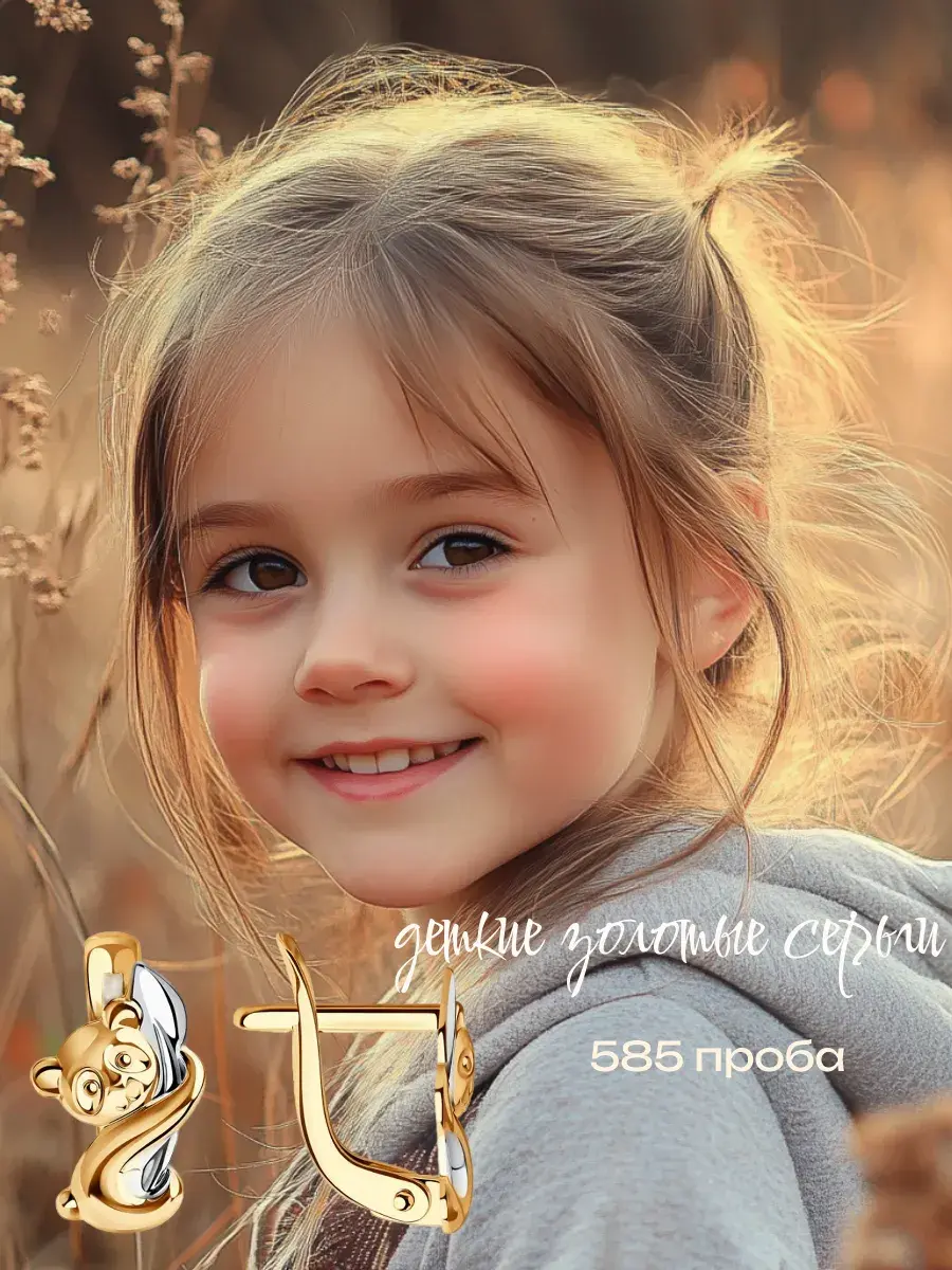 Серьги детские для девочек из золота 585 пробы. Масса изделия: 0.99 грамм. Красивые, изящные и лёгкие серьги дополнят образ принцессы! Переходите в каталог и выбирайте украшение на свой вкус!