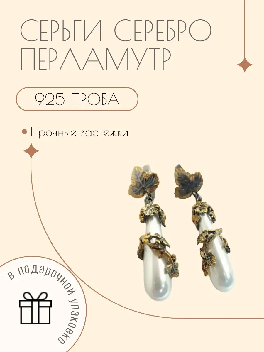 Серьги женские серебряные от нашего ювелирного бренда - стильные украшения, которые украсят ваш повседневный и праздничный образ. Сережки выполнены в стиле виноградной лозы - символа изобилия и плодородия. Вставка: художественный перламутр . Масса изделия: 12 грамм. Наши ювелирные изделия НЕ являются бижутерией, изготовлены из серебра 925 пробы, покрытие золото 585 пробы или родий. Для гармоничного образа мы стараемся изготавливать парные украшения, поэтому в нашем ассортименте вы найдете кольцо (арт. ) в комплект. Украшения приходят с подарочной упаковкой (подарочная коробка) - оригинальный подарок любимой женщине, девушке, девочке на: день рождения, Новый год, 8 марта, День всех влюбленных (14 февраля) или любой праздник и повод. Значение веса и цвет вставок может незначительно отличаться от указанного в карточке товара.