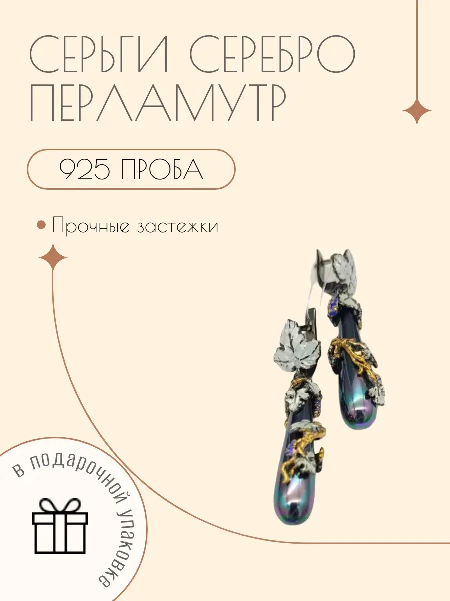 Серьги женские серебряные от нашего ювелирного бренда - стильные украшения, которые украсят ваш повседневный и праздничный образ. Сережки выполнены в стиле виноградной лозы - символа изобилия и плодородия. Вставка: художественный перламутр . Масса изделия: 12,5 грамм. Наши ювелирные изделия НЕ являются бижутерией, изготовлены из серебра 925 пробы, покрытие золото 585 пробы или родий. Для гармоничного образа мы стараемся изготавливать парные украшения, поэтому в нашем ассортименте вы найдете кольцо (арт. ) в комплект. Украшения приходят с подарочной упаковкой (подарочная коробка) - оригинальный подарок любимой женщине, девушке, девочке на: день рождения, Новый год, 8 марта, День всех влюбленных (14 февраля) или любой праздник и повод. Значение веса и цвет вставок может незначительно отличаться от указанного в карточке товара.