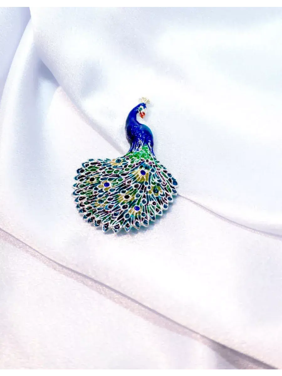 Брошь необычная с элементами из эмали в дизайне хвоста павлина из серебра 925 пробы. Брошь будет долго радовать вас, а также может стать отличным подарком. Также в комплекте предлагаем серьги - 13.13 грамм (в рекомендациях к товару снизу).