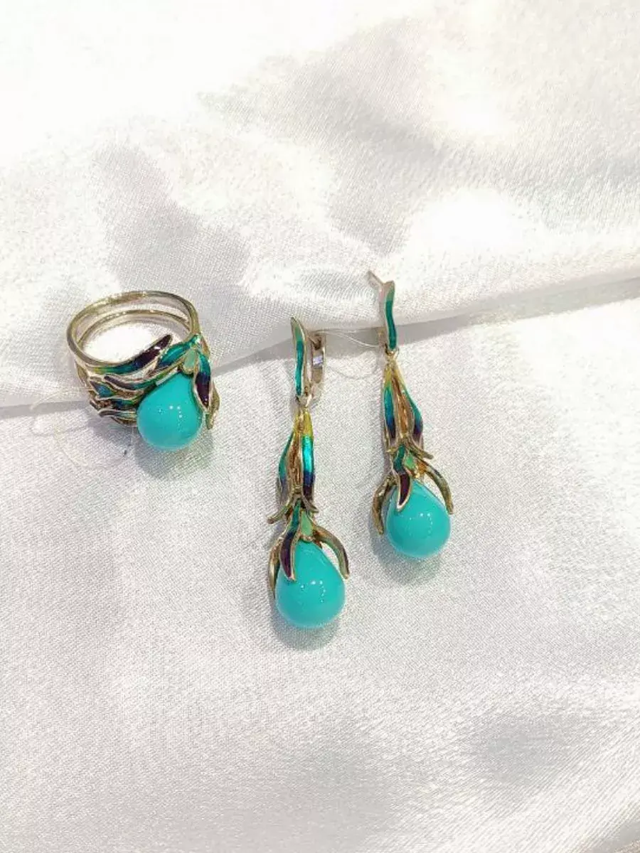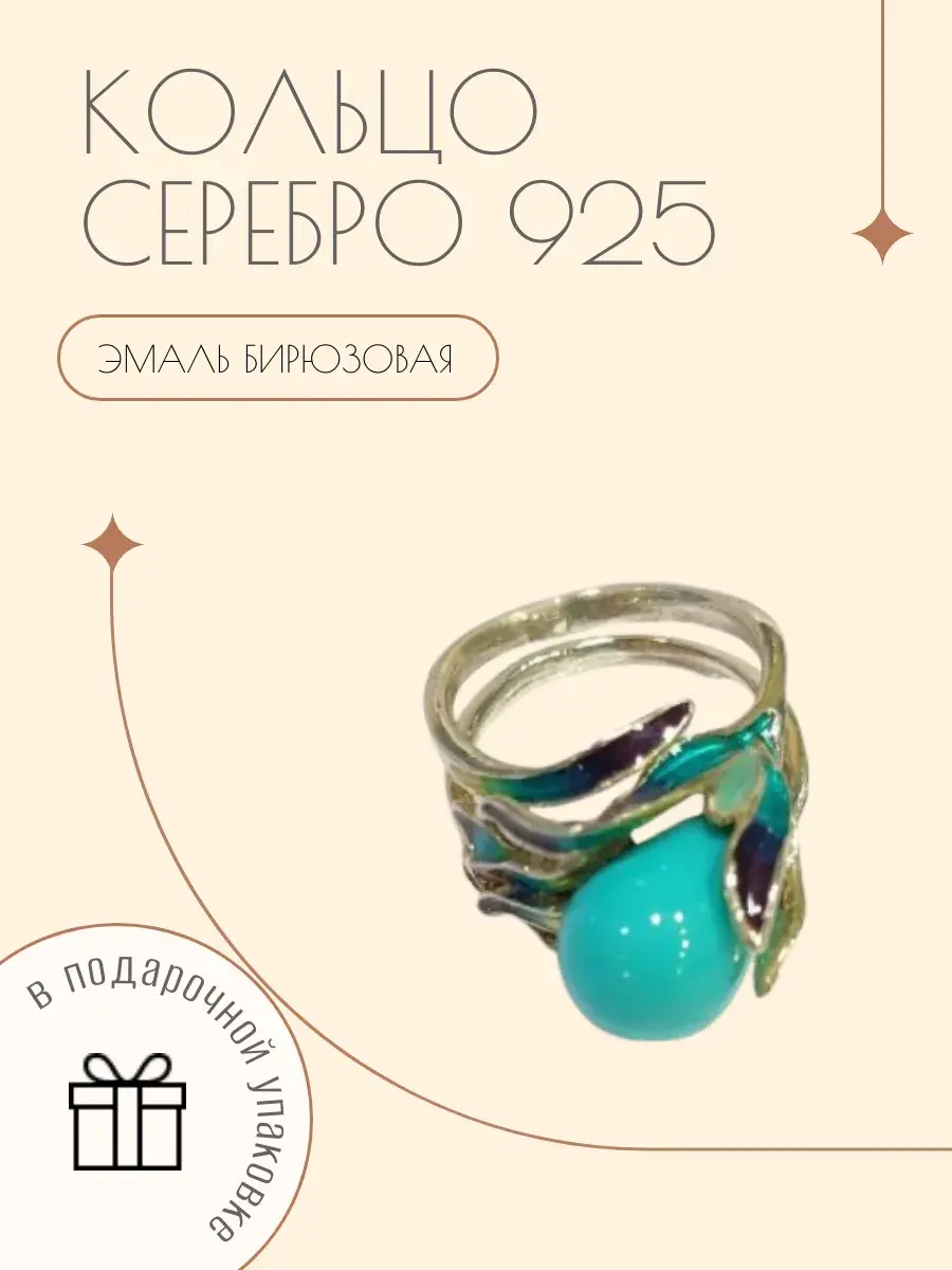 Кольцо женское из серебра 925 пробы. Вставка: Искусственная бирюза.