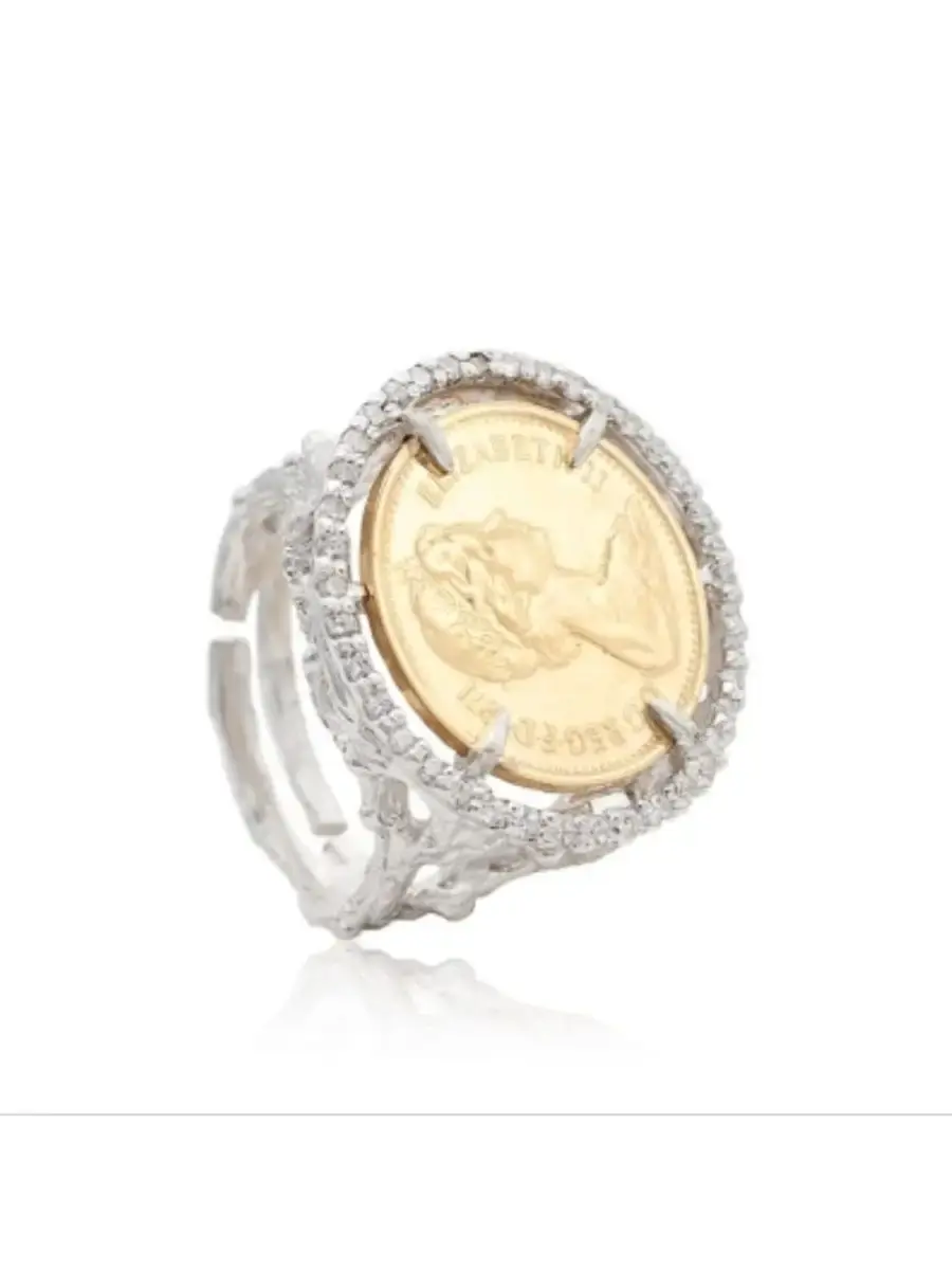 Стильное серебряное кольцо монетка выполнено из серебра 925 пробы. Сама монета натуральная, позолченная золотом 999 пробы. Вставка: фианиты. Вес кольца: 10.33 грамм. В комплект подбираются серьги монеты. Женское кольцо монета подходит под белую рубашку или блузку в офис, джинсы и худи для повседневной жизни, под праздничный образ или вечернее платье, романтичный и пляжный образ с пляжной накидкой и купальником. Стильное кольцо с фианитами это отличный подарок жене, девушке, девочке подростку, любимой женщине, маме, сестре или коллеге, если вы задумываетесь, что подарить на новый год, 8 марта, выпускной, свадьбу или день рождение.Так же в нашем магазине вы можете приобрести: колье, бусы, крупные бусы кубические, сережки, браслет, аксессуары, бижутерия, серьги, аксессуар,.
