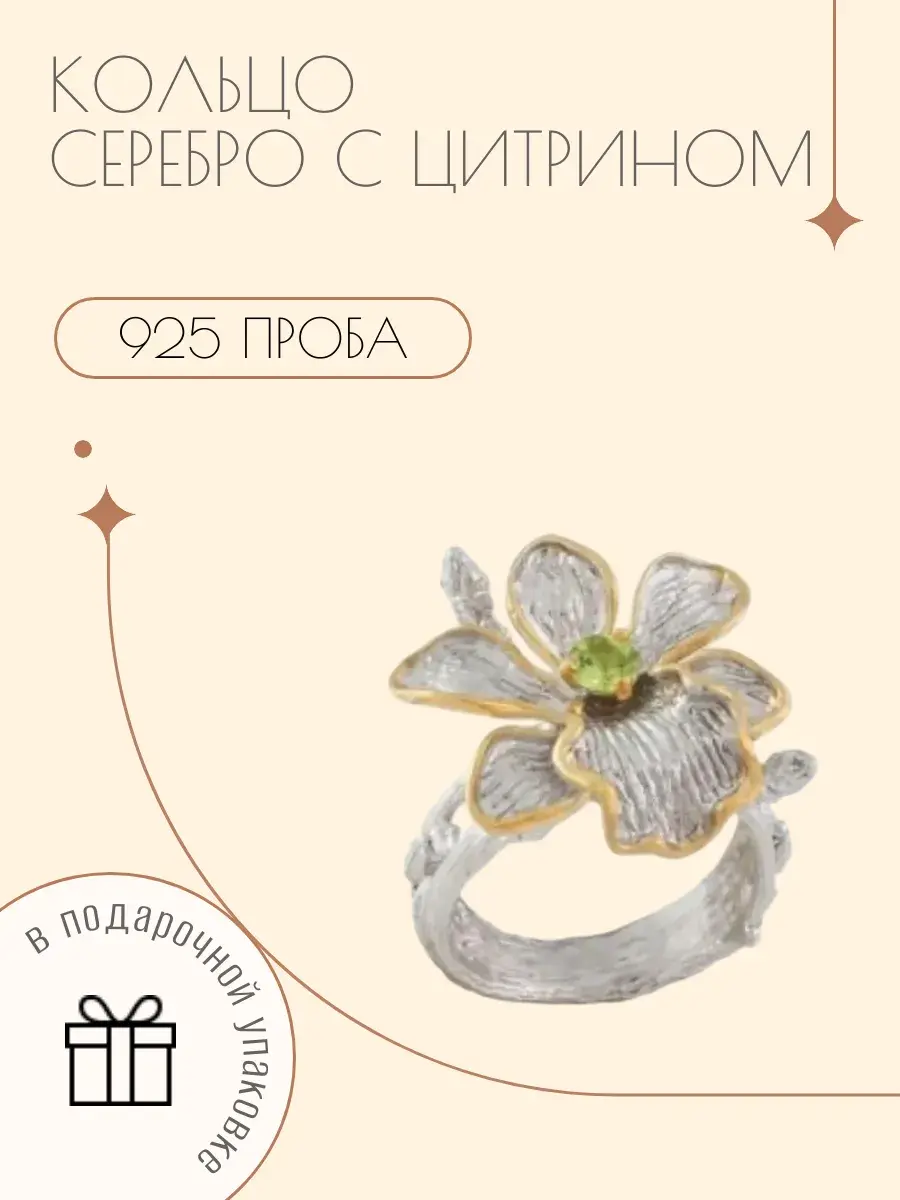 Классическое серебряное кольцо с натуральным цитрином. Масса кольца: 8,65 грамм. Кольца с цитрином прекрасно подходят к любому образу: надевайте его на учебу, работу, свидание или в особый праздничный вечер. Серебро 925 пробы покрыто толстым слоем родия, который защищает металл от потемнения и царапин - даже спустя годы ношения кольцо будет выглядеть новым. Это не только стильное украшение, но и символ удачи - магия натурального камня цитрина привлекает в жизнь своего обладателя радость и счастье, помогает найти позитивный настрой. Уникальное дизайнерское кольцо можно сочетать с серьгами в изящном гарнитуре.