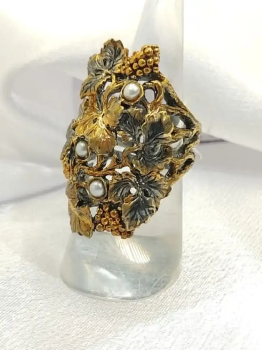 Кольца женские серебряные от нашего ювелирного бренда - стильные украшения, которые украсят ваш повседневный и праздничный образ. Кольцо выполнено в стиле виноградной лозы - символа изобилия и плодородия. Вставка: жемчуг. Масса изделия: 16 грамм. Кольцо безразмерное. Наши ювелирные изделия НЕ являются бижутерией, изготовлены из серебра 925 пробы, покрытие золото 585 пробы или родий. Для гармоничного образа мы стараемся изготавливать парные украшения, поэтому в нашем ассортименте вы найдете серьги (арт. ) в комплект. Украшения приходят с подарочной упаковкой (подарочная коробка или мешочек) - оригинальный подарок любимой женщине, девушке, девочке на: день рождения, Новый год, 8 марта, День всех влюбленных (14 февраля) или любой праздник и повод. Значение веса и цвет вставок может незначительно отличаться от указанного в карточке товара.