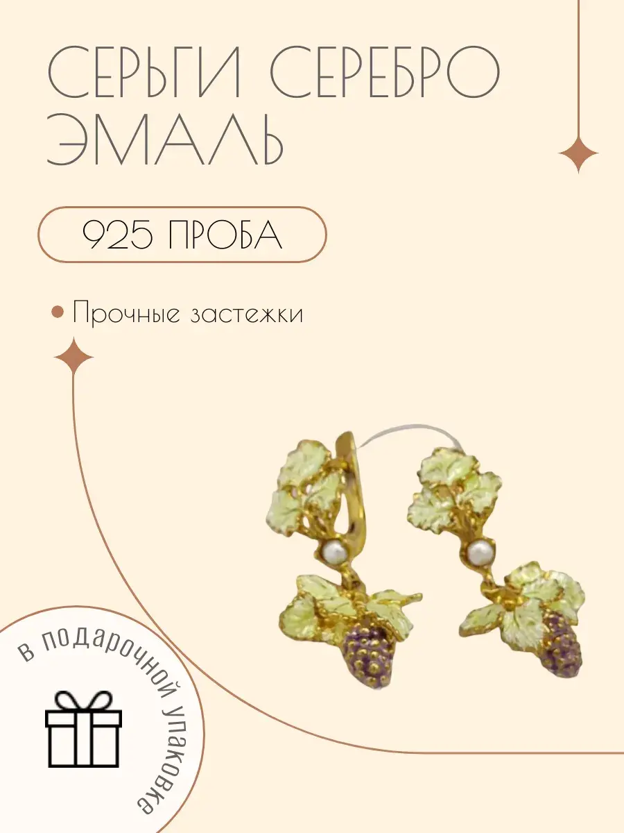 Ювелирные серьги серебро 925 пробы - это модные и необычные изделия для женщин, которые придают изящество и шарм. Вставка: эмаль, стразы. Серьги - 6.40 грамм.