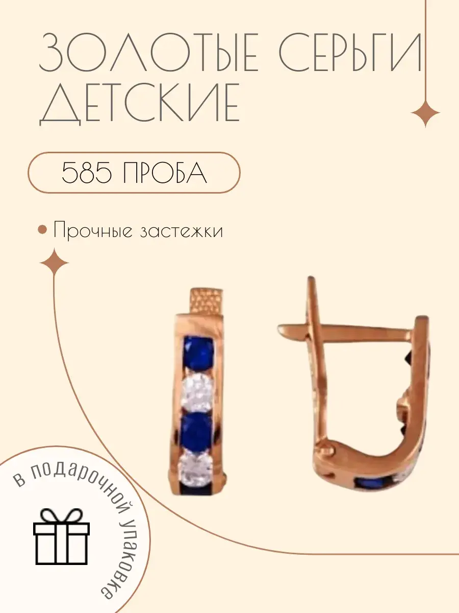 Серьги детские с фианитами из золота 585 пробы. Масса изделия детских сережек: 1.22 грамм. Красивые, изящные и лёгкие серьги дополнят образ вашей принцессы! Переходите в каталог и выбирайте украшение на свой вкус! Серьги упакованы в подарочную коробку. Порадуйте себя или близкого человека стильным изделием!