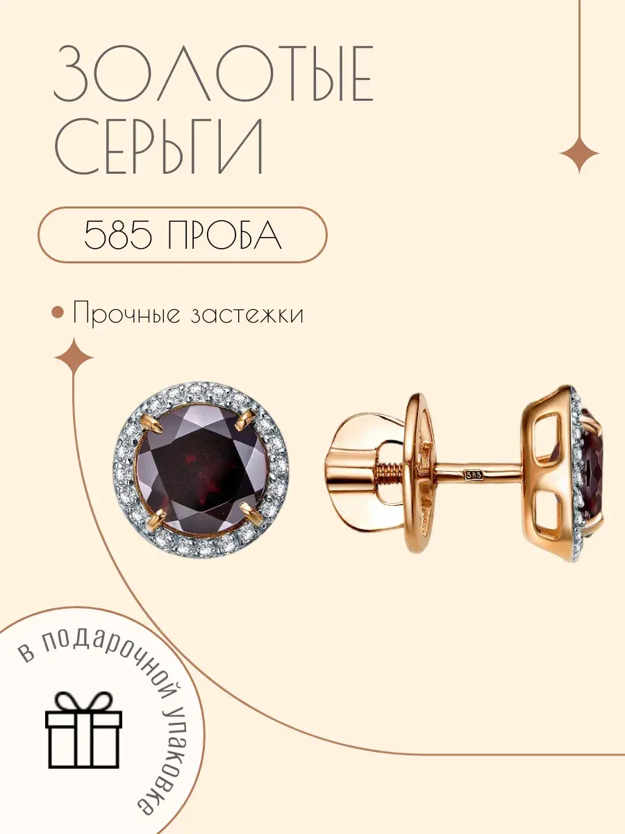 Элегантные серьги пусеты от бренда "Золотая Симфония" станут любимыми женскими украшениями и могут использоваться в качестве аксессуаров как на каждый день, так и для вечернего образа. Они изготовлены из высококачественного золота 585 пробы и украшены гранатами и фианитами. Вес сережек 2,48 грамма. Стильные сережки гвоздики дополнят образ маленькой девочки - подростка и молодой девчонки, взрослой женщины среднего и более зрелого возраста. Оригинальный комплект ювелирных украшений соответствует последним модным трендам.Эти серьги способны выступить отличным подарком для всех дорогих сердцу дам. Преподнести его уместно на рождественское и новогоднее торжество, годовщину свадьбы или отношений и день рождения, также на юбилей или День Влюбленных, 8 марта и абсолютно любой другой без исключения праздник.Этот презент непременно порадует любимую девушку и сестру, дочку и маму, жену и лучшую подругу. Он обязательно вызовет восторг у бабушки и коллеги, тети и крестницы, племянницы и крестной. Ведь стильные и многофункциональные украшения обязательно займут почетное место в каждой женской коллекции. Они отличаются прочностью и долговечностью.